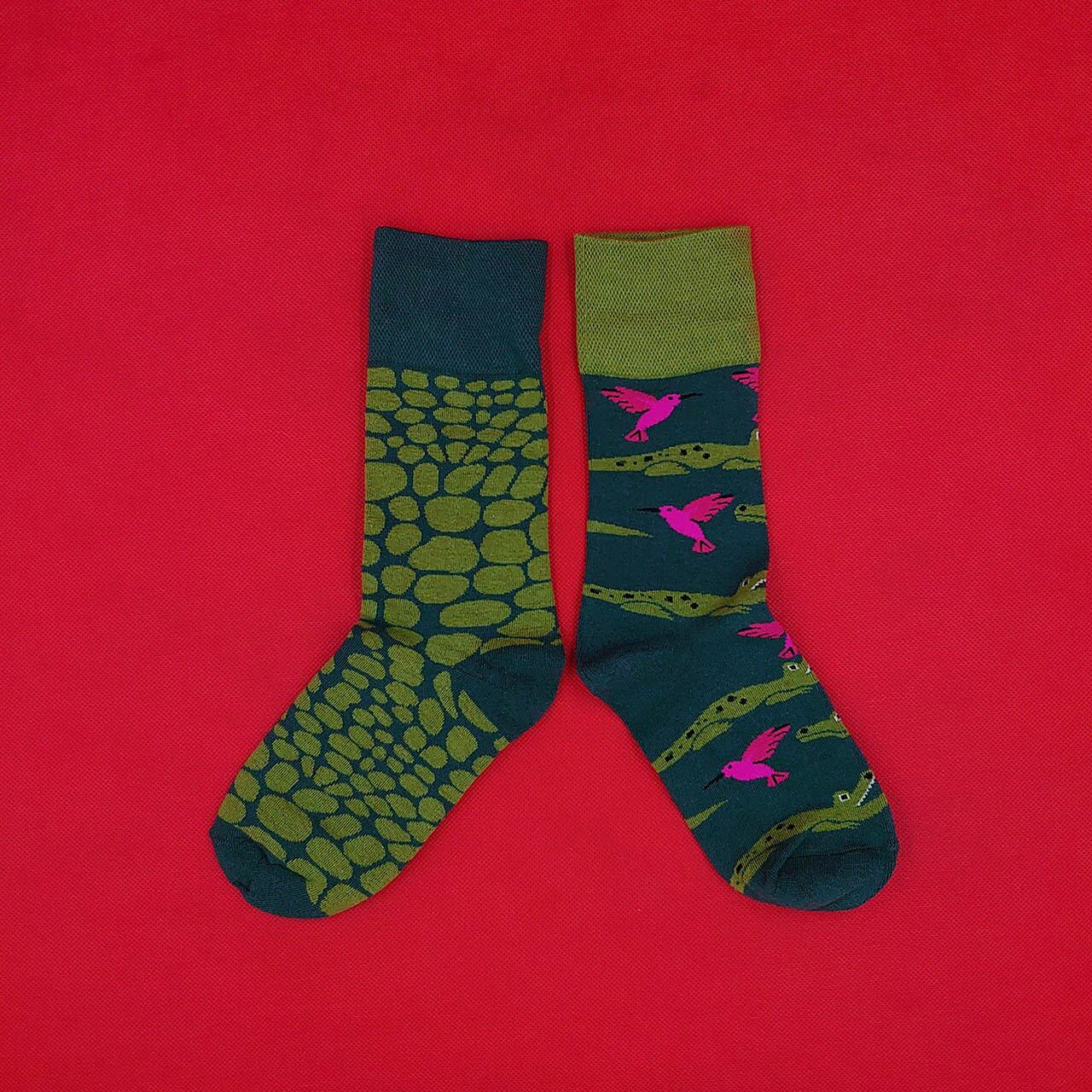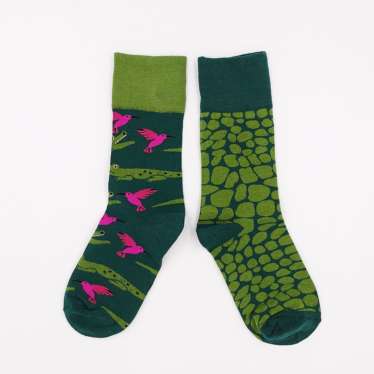 グリーン系でまとめた色あいはユニーク靴下初めての方には使いやすいデザインです。