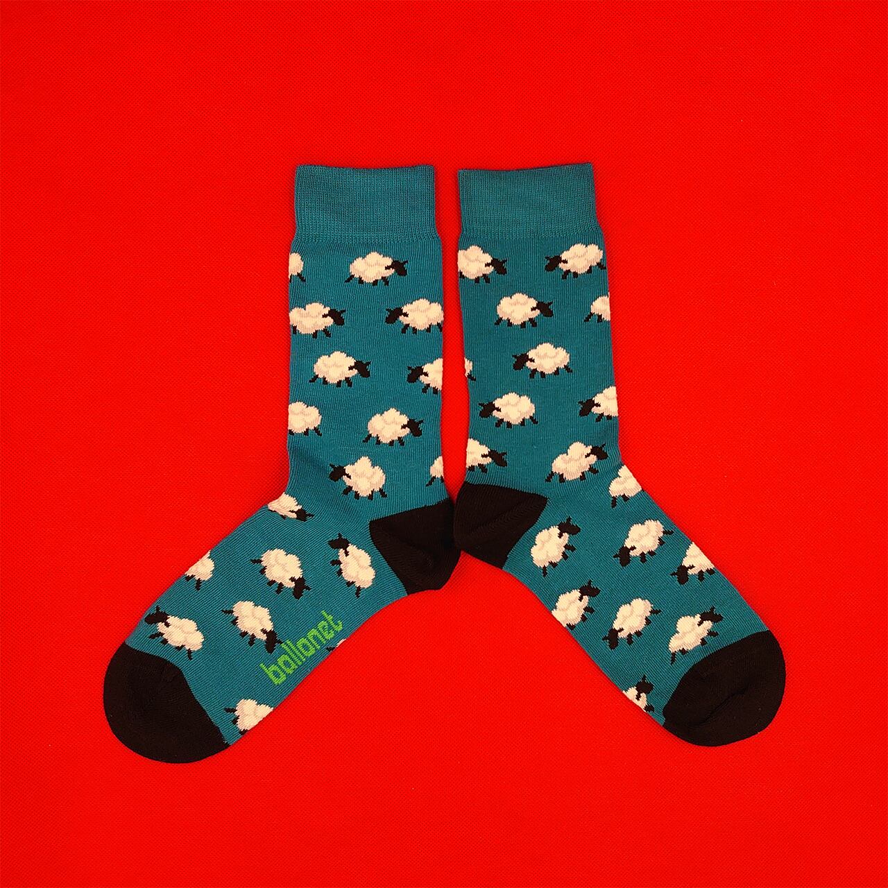ブルーグリーンベースに白いヒツジがとっても可愛いソックスです。